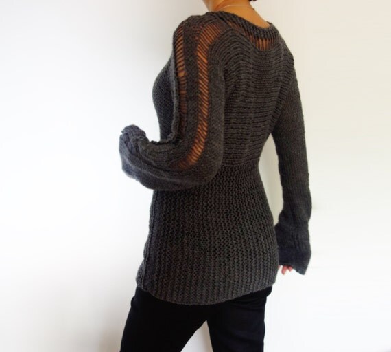 4 . Hand knit holey crochet loose sweater ready to ship Open stitch party knitted sweater Sheer lace Make a curly chain knot